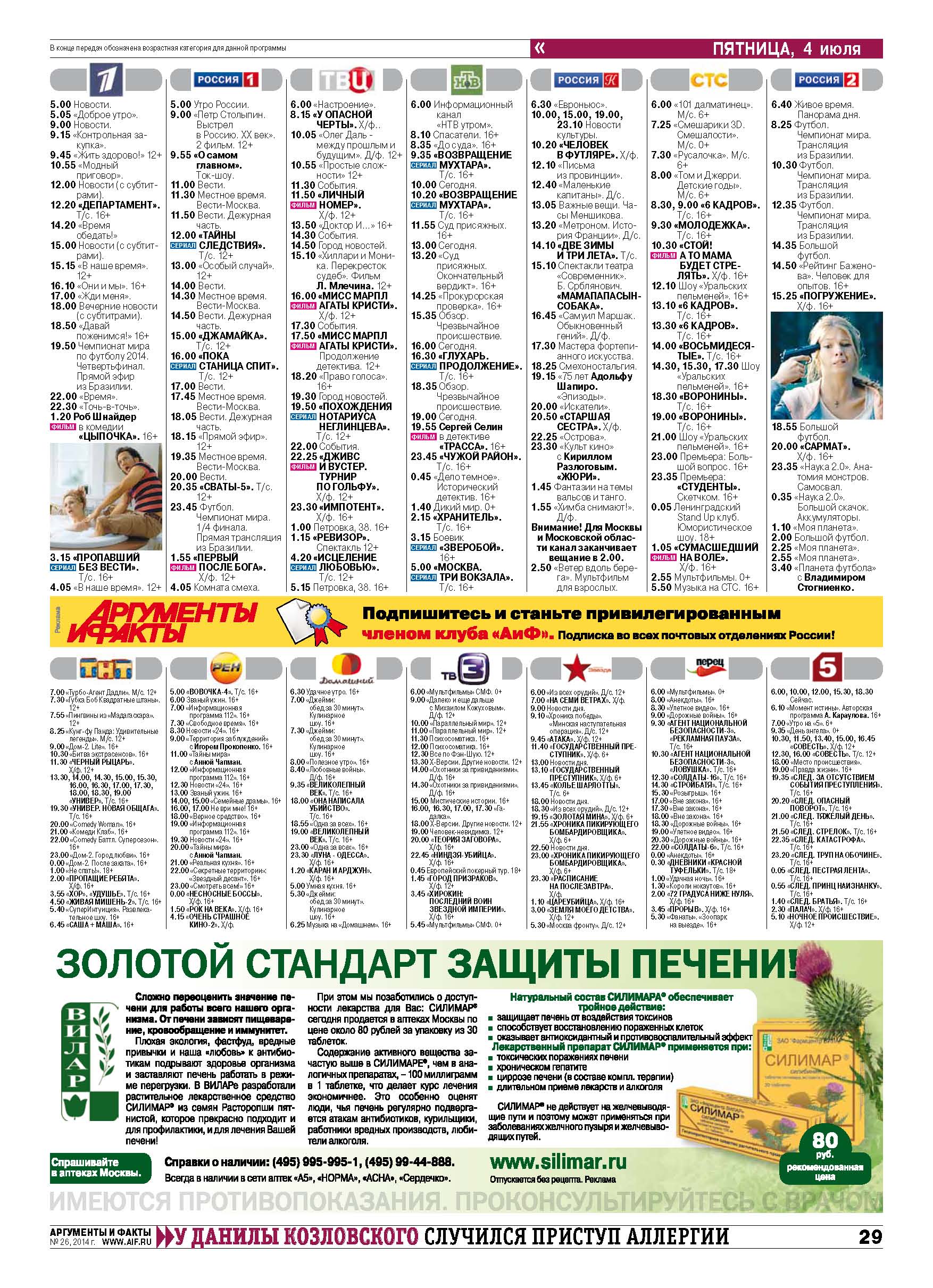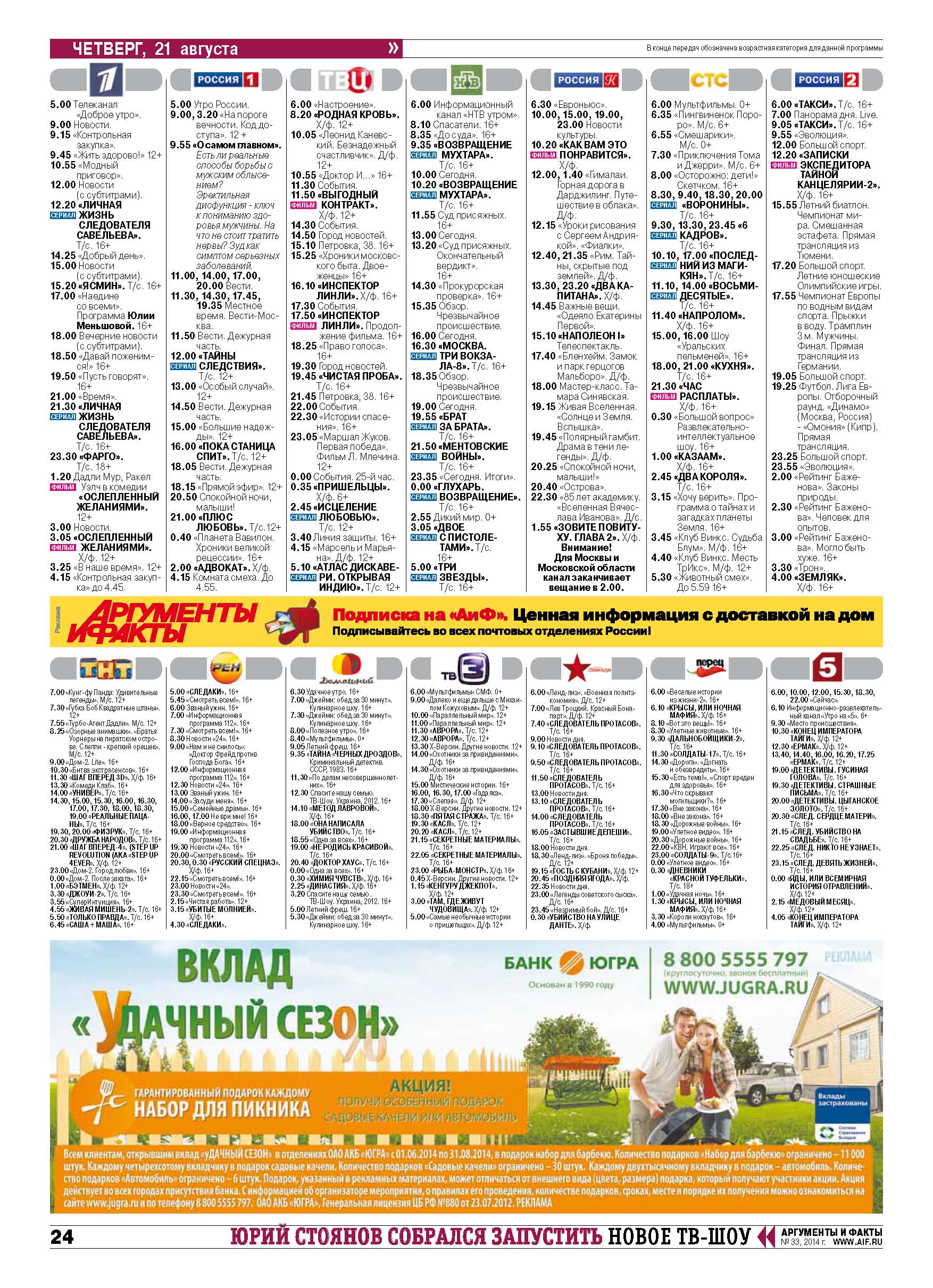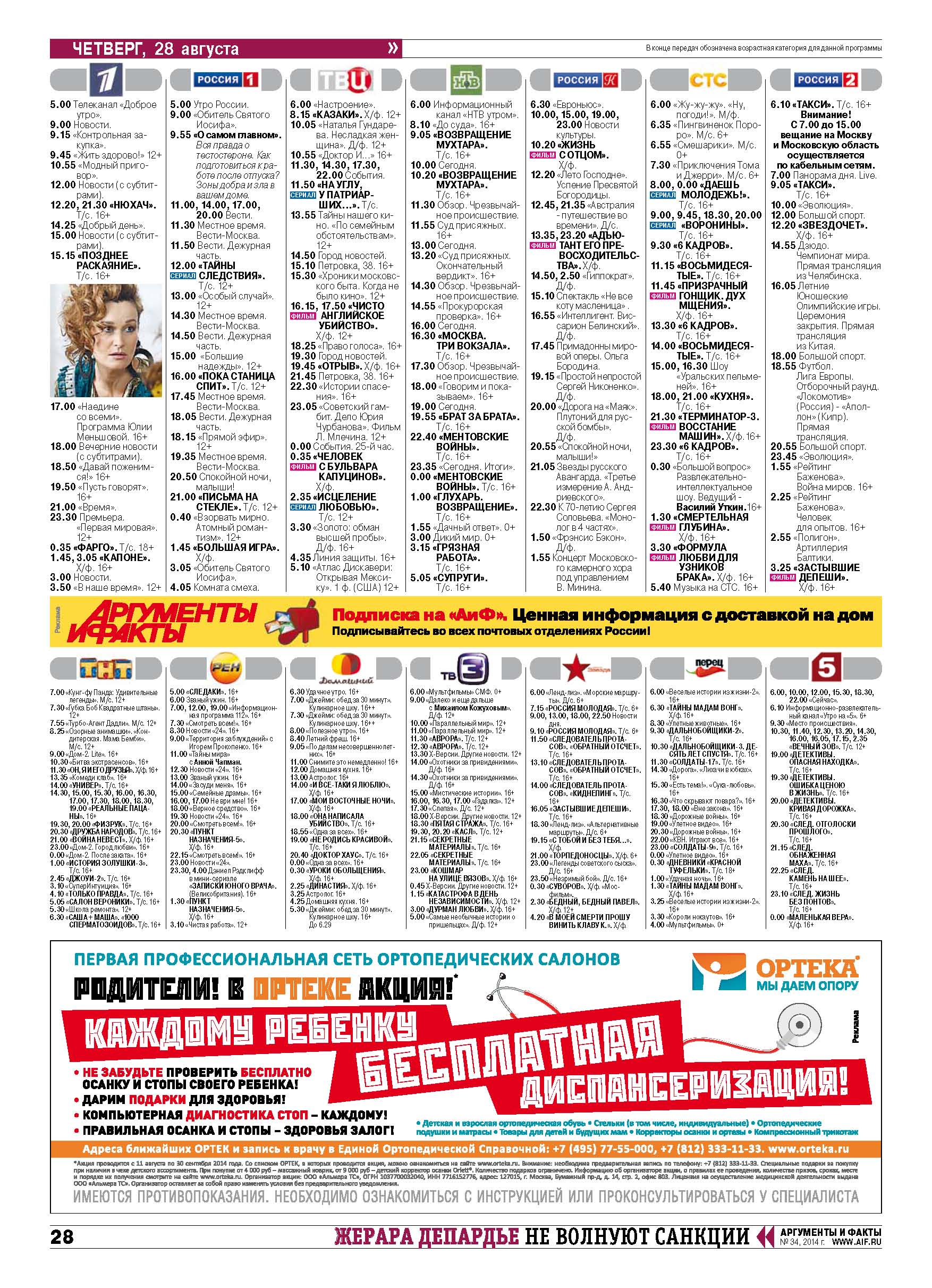 Сетка с программой телепередач занимает центральный раздел «Аргументов и фактов», который вынимается из номера и используется как самостоятельная тетрадка у телевизора.